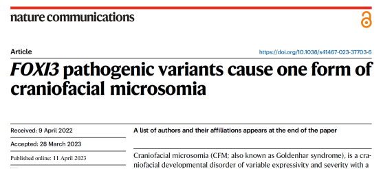 日前,北京麻豆精品秘 国产传媒医学科学与工程学院张永彪团队,在颌面部疾病遗传病因方面取得重要进展,相关研究成果以Article长文形式,于2023年4月在线发表于《自然-通讯》杂志: “FOXI3 pathogenic variants cause one form of craniofacial microsomia”。该研究发现了半侧颜面短小畸形的新致病基因,并在体内外解析了突变导致颌面部畸形产生的原因。